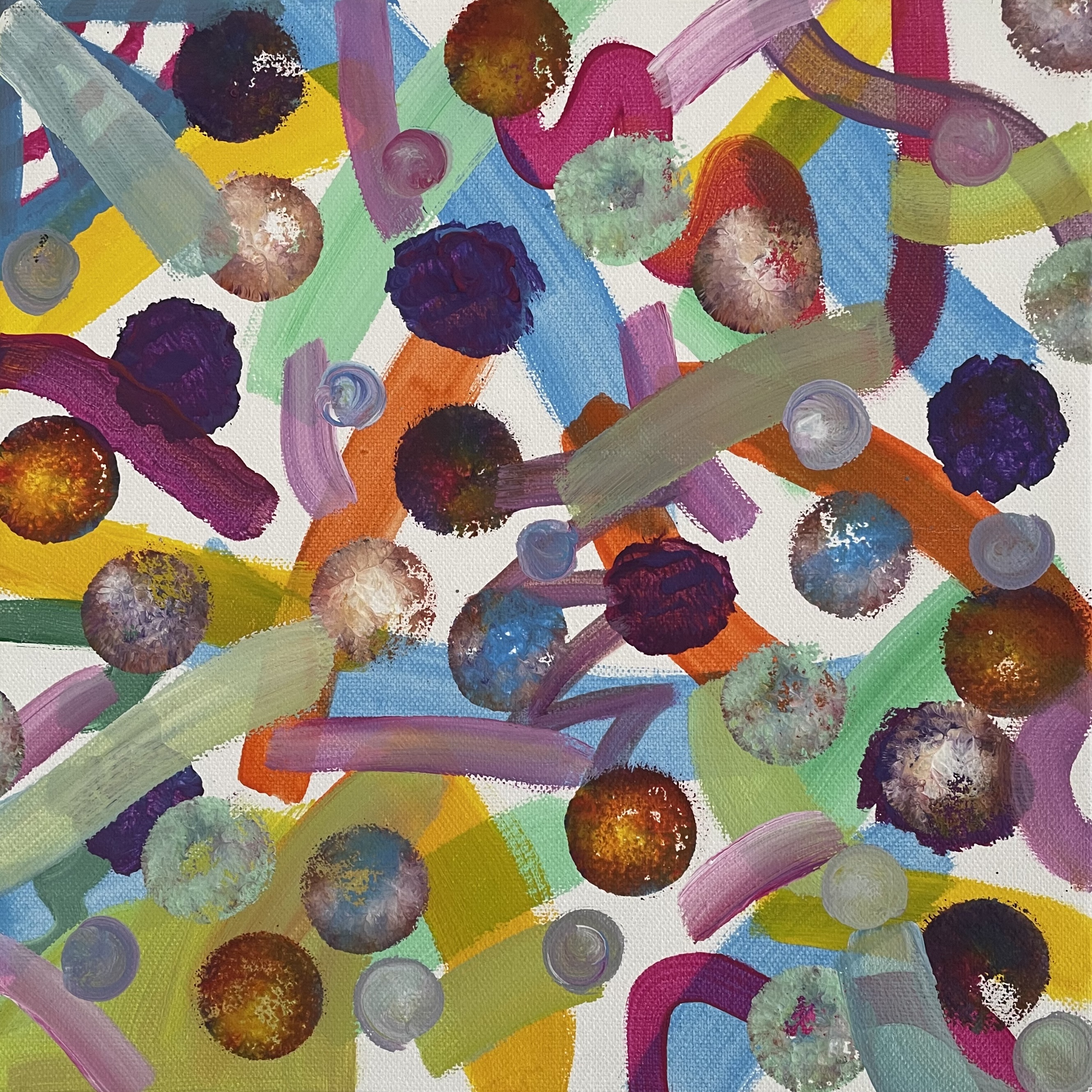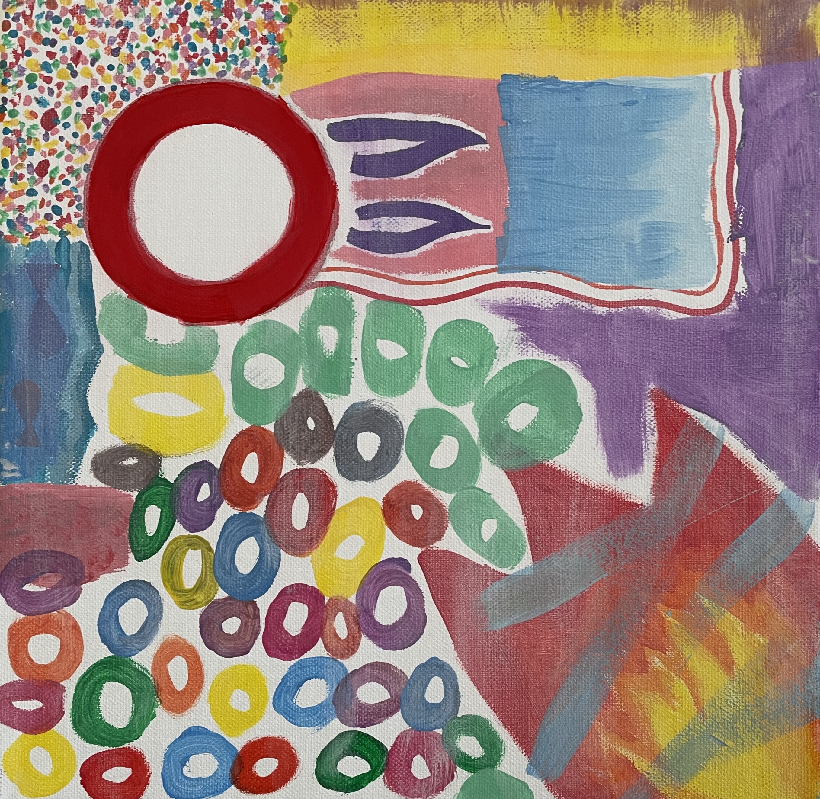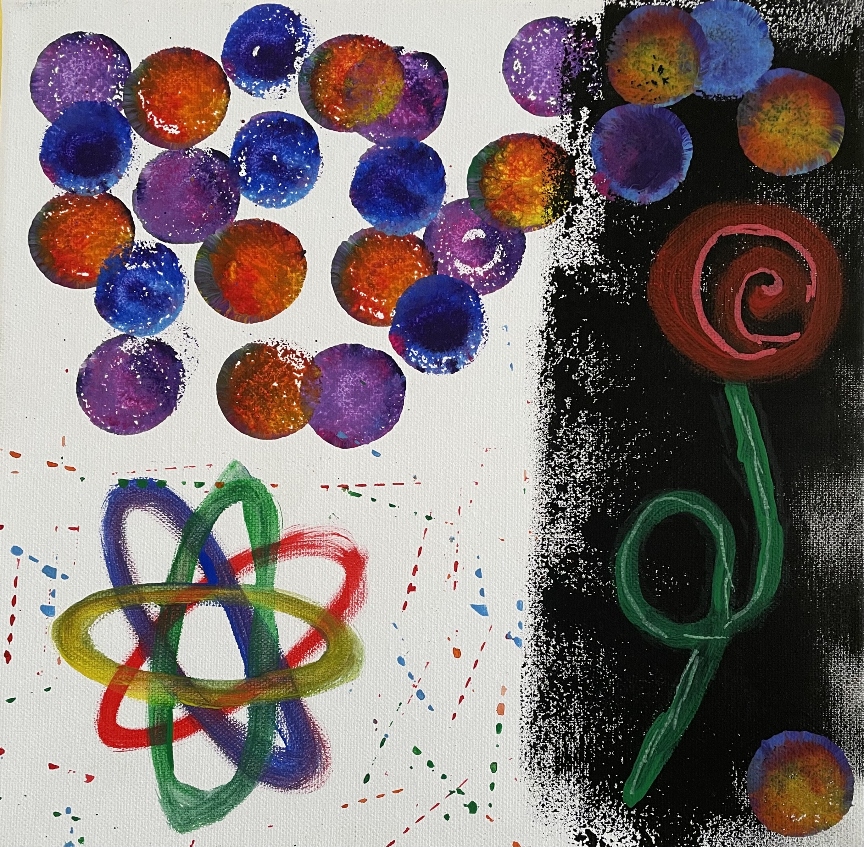 Die Schüler:innen der Klasse 7A/E beschäftigten sich im Kunstunterricht mit dem Themenpool „Abstrakte Malerei“ von Kandinsky, Malewitsch, Kupka, Klint bis zu Mondrian, Pollock, Poons, Richter und ihren unterschiedlichen Interpretationen und Zugängen. Die Werke der genannten Künstler:innen dienten als Anhaltspunkte für ihre eigenen abstrakten Malereien. Die Werke der Schüler*innen sind in der Aula 2 ausgestellt.