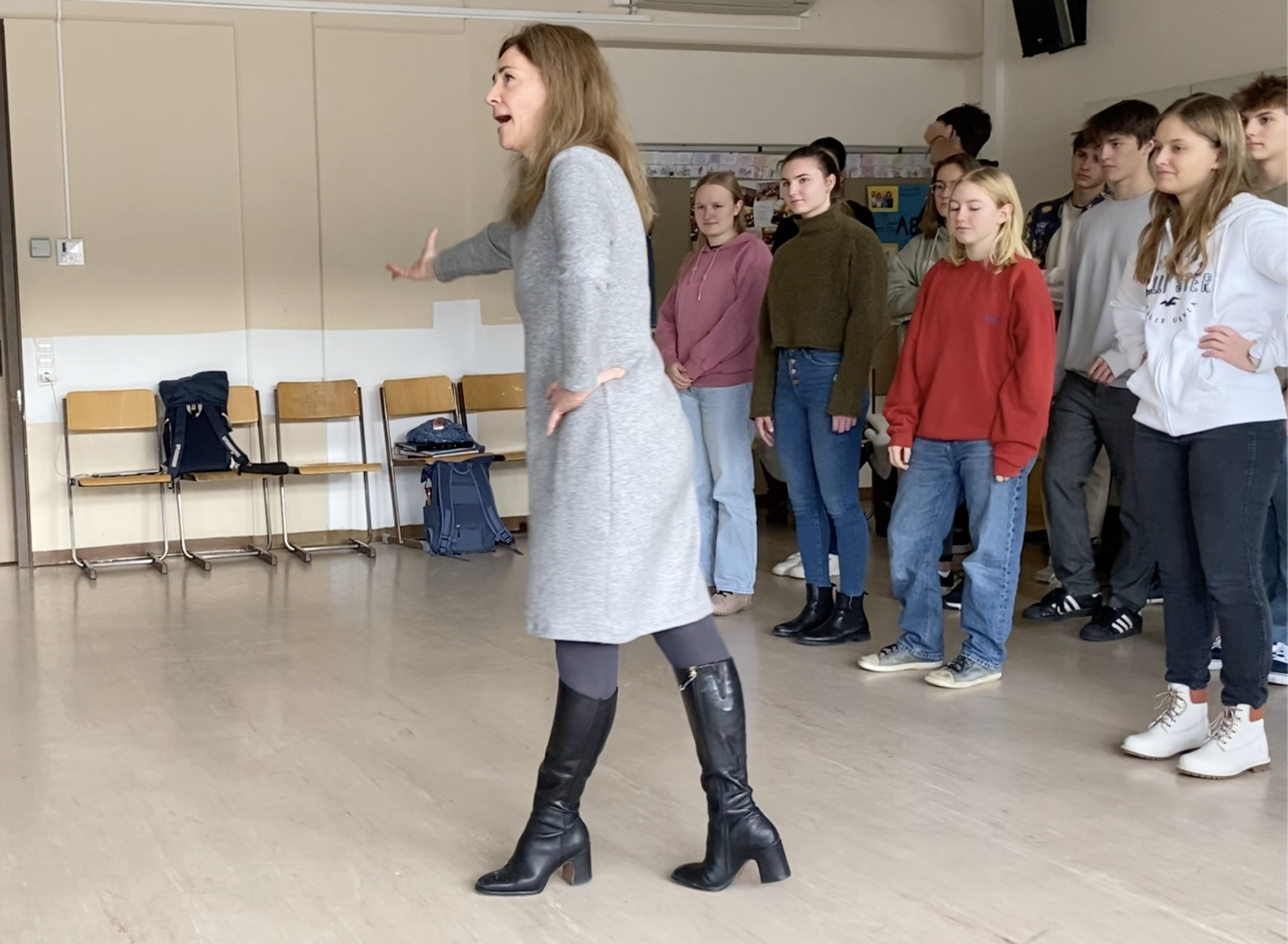 Ist es nicht schön, wenn man in den eigenen Reihen Kolleginnen und Kollegen hat, die neben ihrer pädagogischen Expertise auch noch Erfahrungen mit anderen Karrieren mitbringen? Frau Mag. Rebecca Kmentt, IBDP Coordinator und Unterrichtende im Fach IB History an unserem Gymnasium, war in ihrem „früheren Leben“ Mitglied des Corps de Ballets an der Wiener Staatsoper. Ihre Begeisterung für das Ballett hat sie nie verloren, und so hat sie sich denn auch bereiterklärt, den Schülerinnen und Schülern aus der Musikgruppe der 8.Klassen unter Mag. Christina Strehlow einen Einblick in die Welt des klassischen Tanzes zu geben.