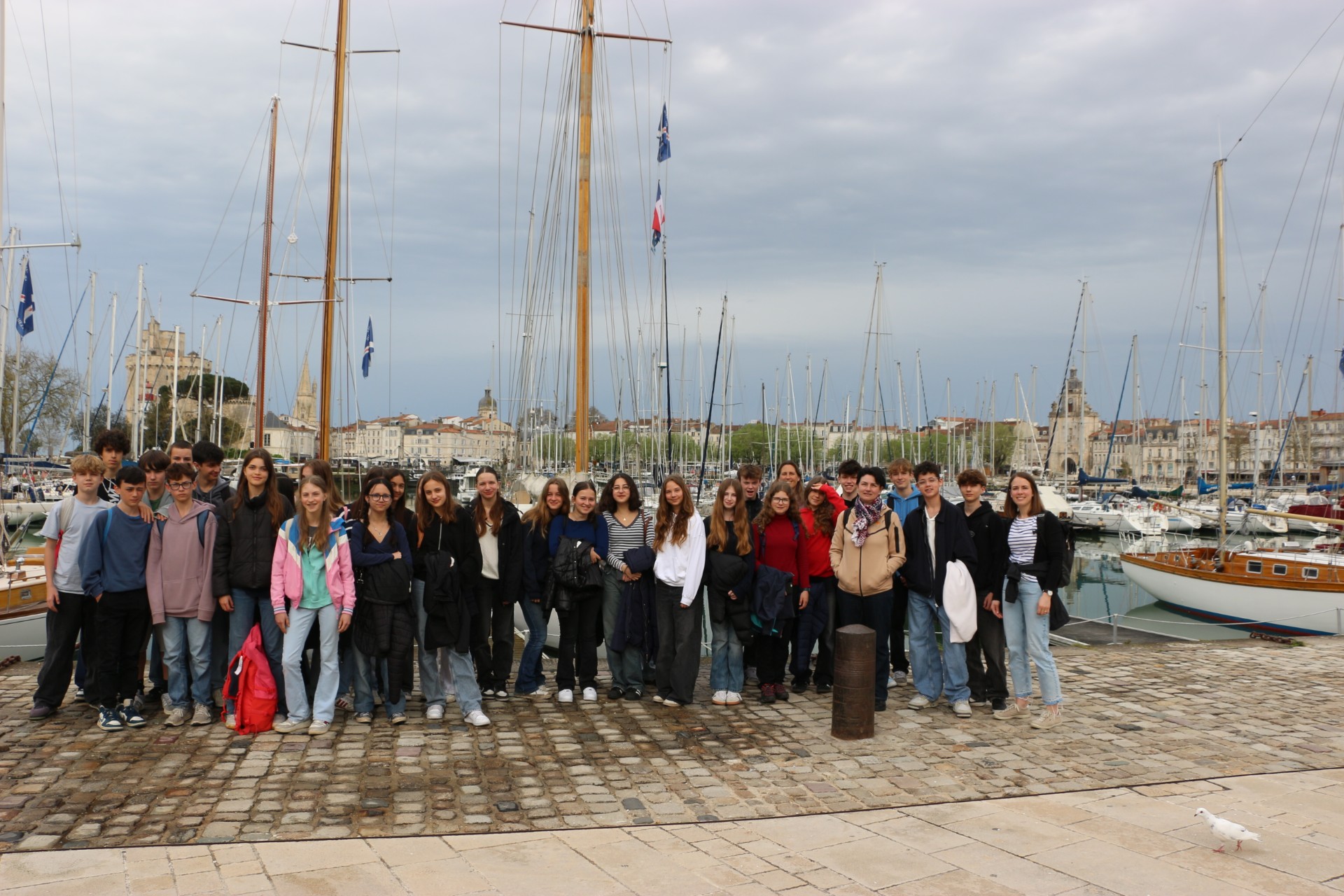 Alles begann am 2.4.2024 in Schwechat, wo wir zuerst nach Frankfurt und anschließend nach Bordeaux flogen. Dort angekommen, wurden wir herzlich von unseren Gastfamilien begrüßt und verbrachten unsere erste Nacht in den französischen Familien. An den folgenden drei Tagen besuchten wir mit unseren AustauschschülerInnen den Unterricht im Collège und bemerkten dort die Unterschiede im Schulsytem und in den Gewohnheiten. An den Nachmittagen hatten wir spaßige Aktivitäten geplant, um Frankreich kennenzulernen. Am Abschlusstag spielten wir ein Fußballmatch und feierten den letzten Abend mit den Franzosen bei einem gemeinsamen Abschlussabend in der Schule. Die französischen Familien brachten allerlei selbstgemachte Gerichte mit. Am Samstag in der Früh verließen wir unsere Gastfamilien und wurden in das Ibis Budget Hotel nach Angoulême gebracht. Noch am selben Tag fuhren wir mit dem TGV (,,train à grande vitesse”), der bis zu 320 km/h erreichen kann, nach Bordeaux, wo wir das ,,Musée de l’Illusion” besuchten und danach selbständig anhand von Quizfragen die Stadt erkunden durften. Unter anderem haben wir folgende Sehenswürdigkeiten besichtigt: La Grosse Cloche, la Cathédrale St. André, le Grand Théâtre de Bordeaux und la Place de la Bourse. Am darauffolgenden Tag besichtigten wir die Stadt La Rochelle. Dort angekommen aßen wir alle in einem Restaurant zu Mittag (crêpes salées et sucrées). Danach hatte jeder die Möglichkeit, durch die Stadt spazieren zu gehen und dazu gab es auch ein paar kleine Aufgaben zu erledigen. Später fuhren wir mit einem Boot zum Strand.
