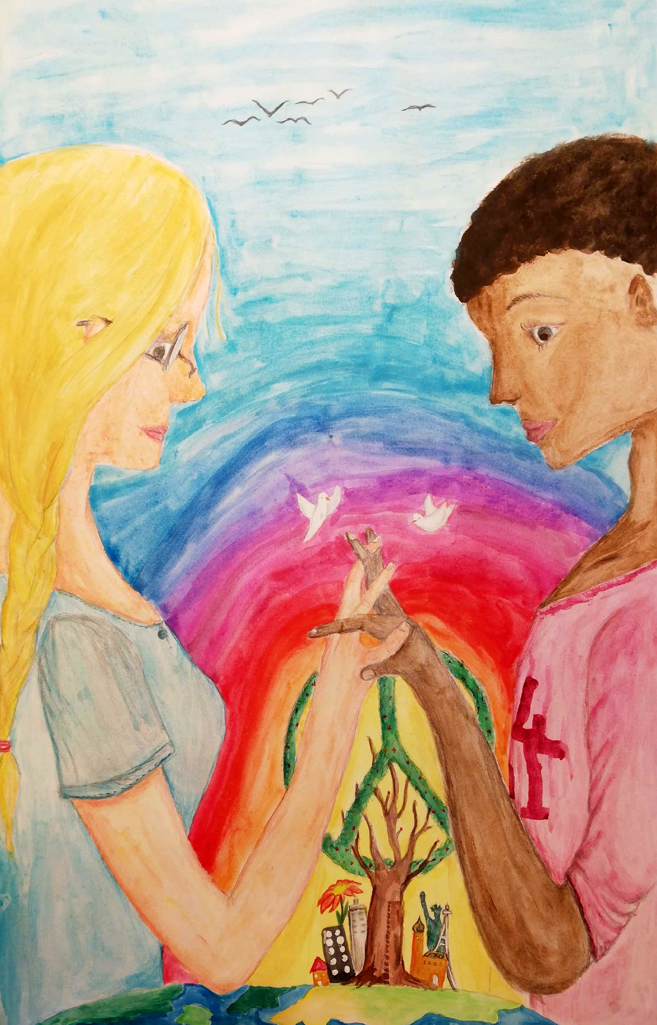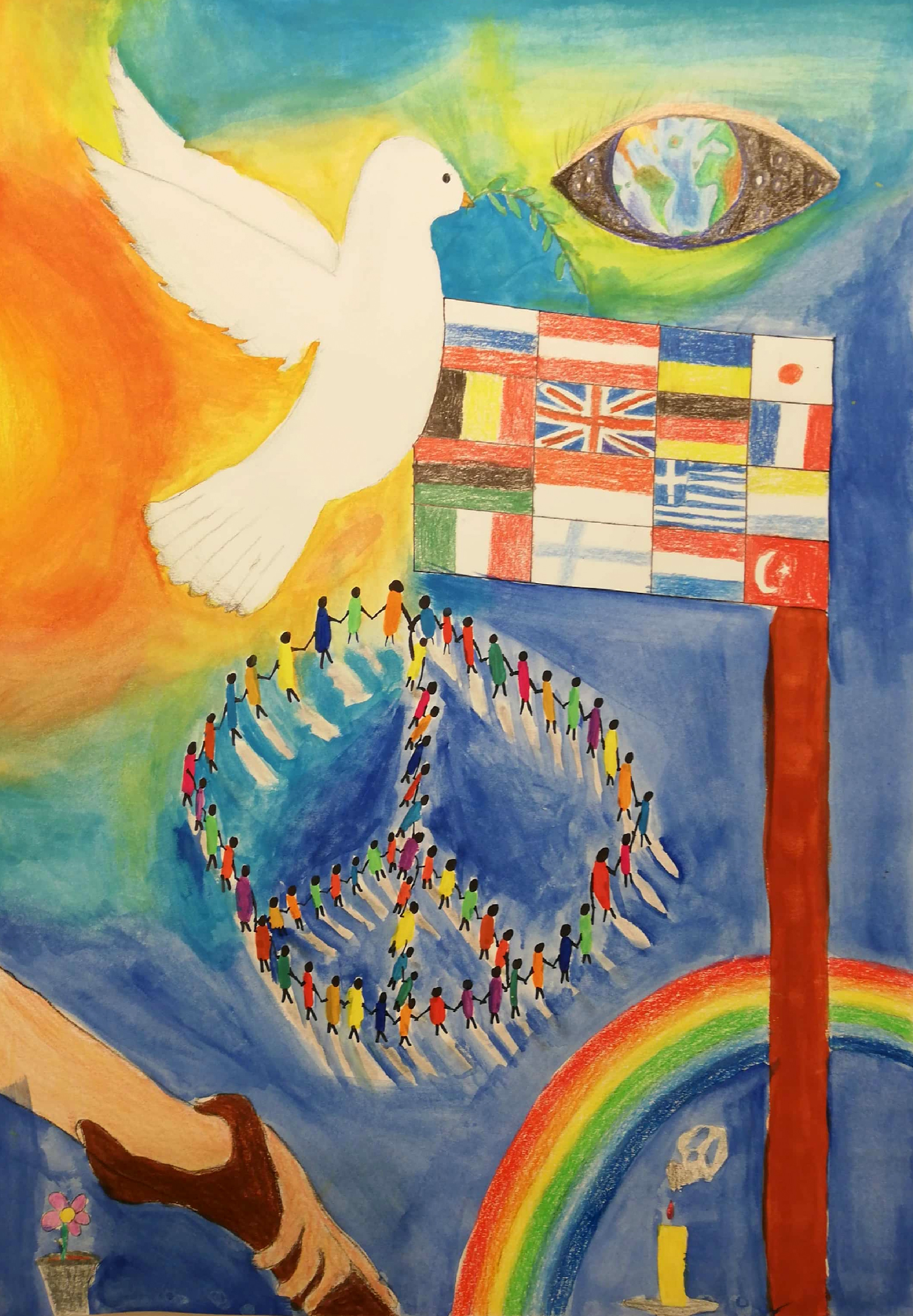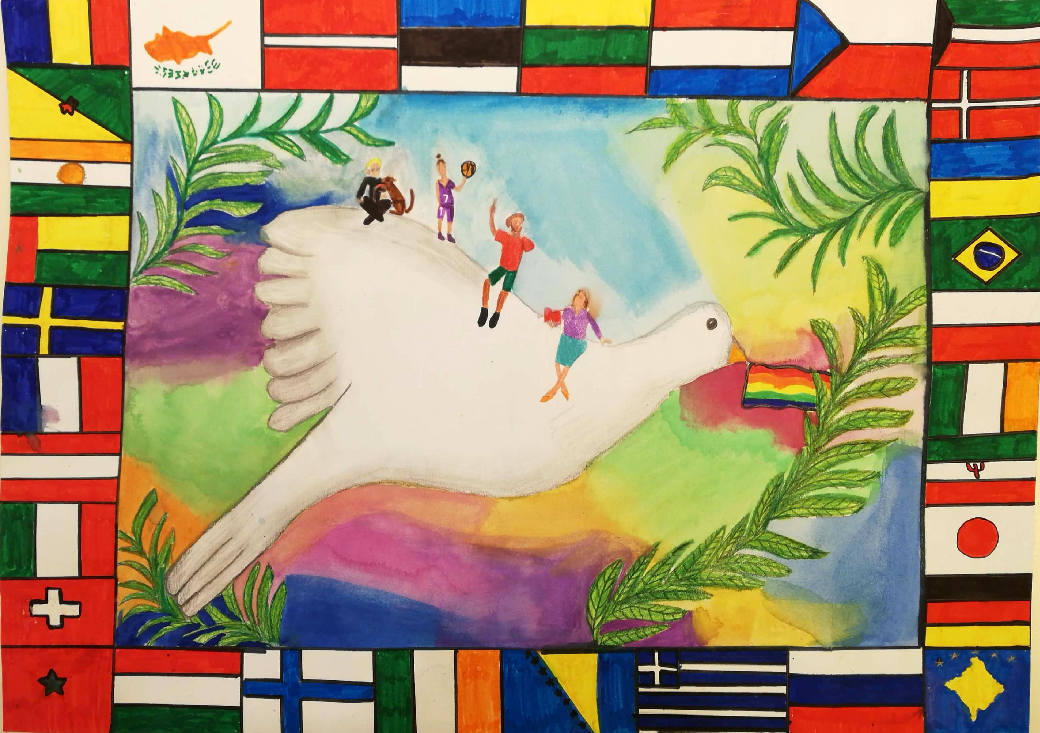Junge Menschen im Alter von 11-13 Jahren wurden wieder aufgerufen, ihre Visionen von gelebtem Frieden zum Thema „Mit Mitgefühl führen“, in Form von bildnerischen Werken zu gestalten. Interpretation des Themas, Originalität und Ausfertigung wurden von einer Fachjury bewertet. Aus hunderten von Schüler:innen-Arbeiten wurden von allen Klosterneuburger Schulen immer die jeweils 5 besten Arbeiten jeder Schule ausgewählt. Seit 21 Jahren nimmt das Gymnasium Klosterneuburg an diesem Friedensplakatwettbewerb teil.