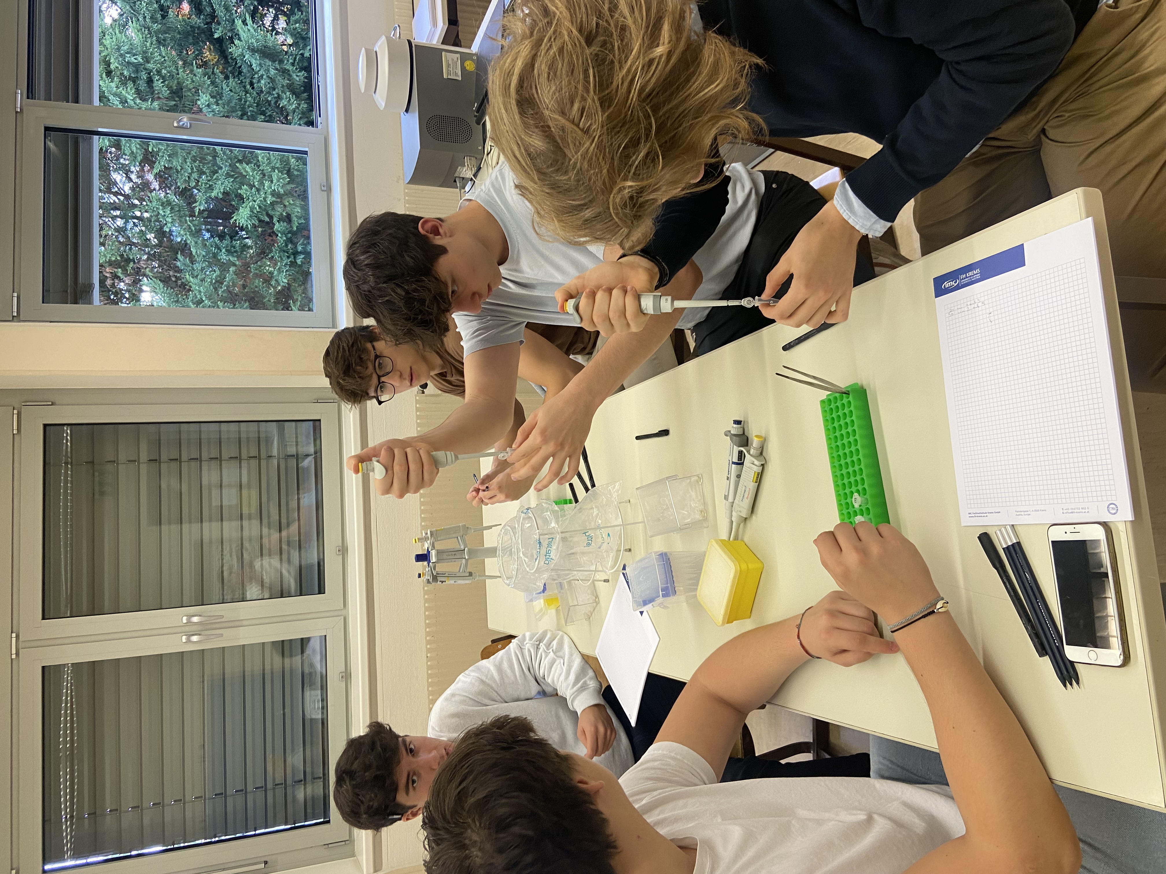 Vor der eigentlichen Arbeit starteten wir mit ein paar Übungen zum Pipettieren, Mischen und Zentrifugieren. Die nötigen Materialien wurden uns dafür gruppenweise zur Verfügung gestellt. So lernten wir beispielsweise den richtigen Umgang mit einer Pipette und die Wichtigkeit von sauberem und genauem Arbeiten. Danach ging es mit der „richtigen“ Arbeit weiter.