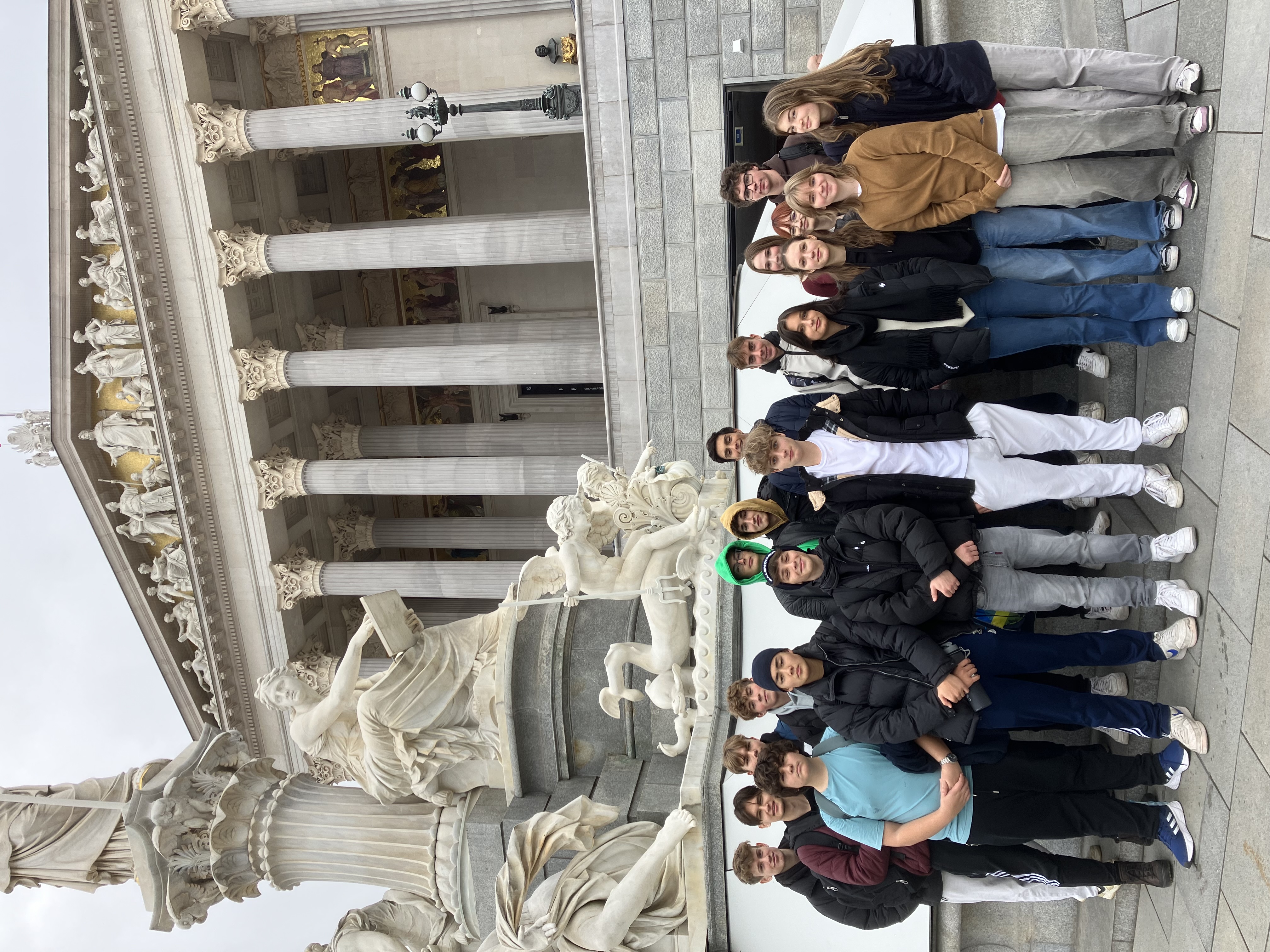 Am 22. November 2023 besuchte die Klasse die 6D mir ihrem Geschichtslehrer Mag. Rohringer im Rahmen der „Politischen Bildung“ das Parlamentsgebäude sowie eine Plenarsitzung des Nationalrats. Nach einem Rundgang durch die neu renovierten Räumlichkeiten (Bundesratssitzungssaal, Historischer Sitzungssaal etc.) durfte die Klasse für eine Stunde auf der Besuchergalerie Platz nehmen und der Budgetdebatte folgen.