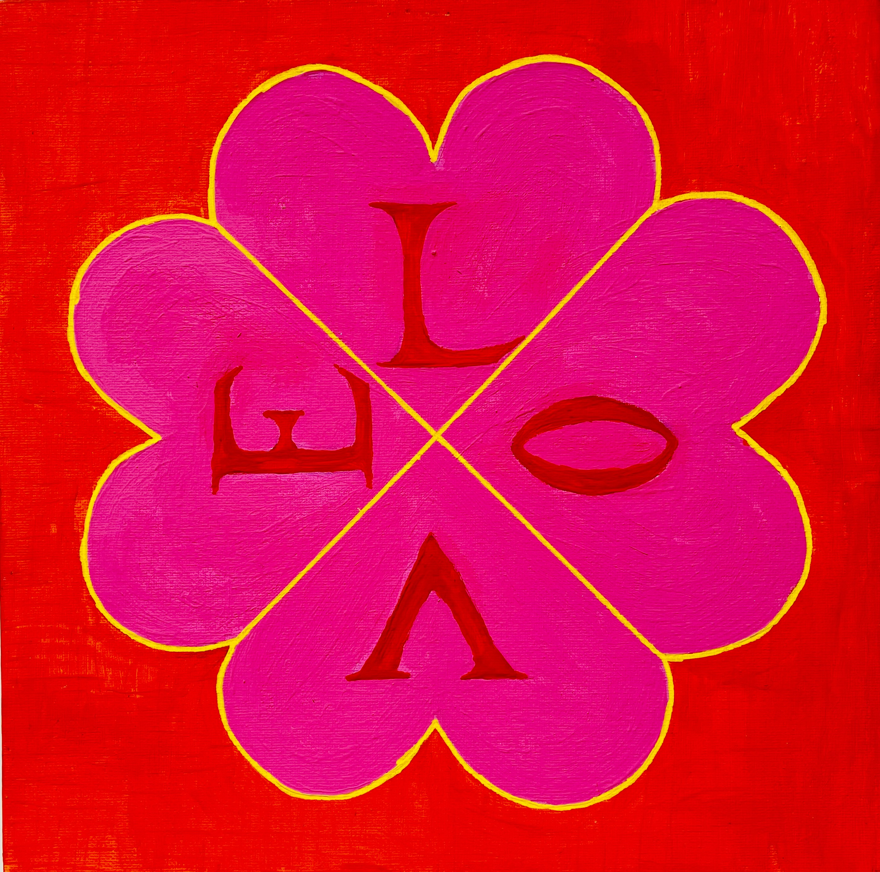 The inspiration for the students' works in class 4C, was the work of Robert Indiana/Pop-Art, and especially his work LOVE (1966). The students' works are contemporary reinterpretations of the work with acrylic on painting panels.