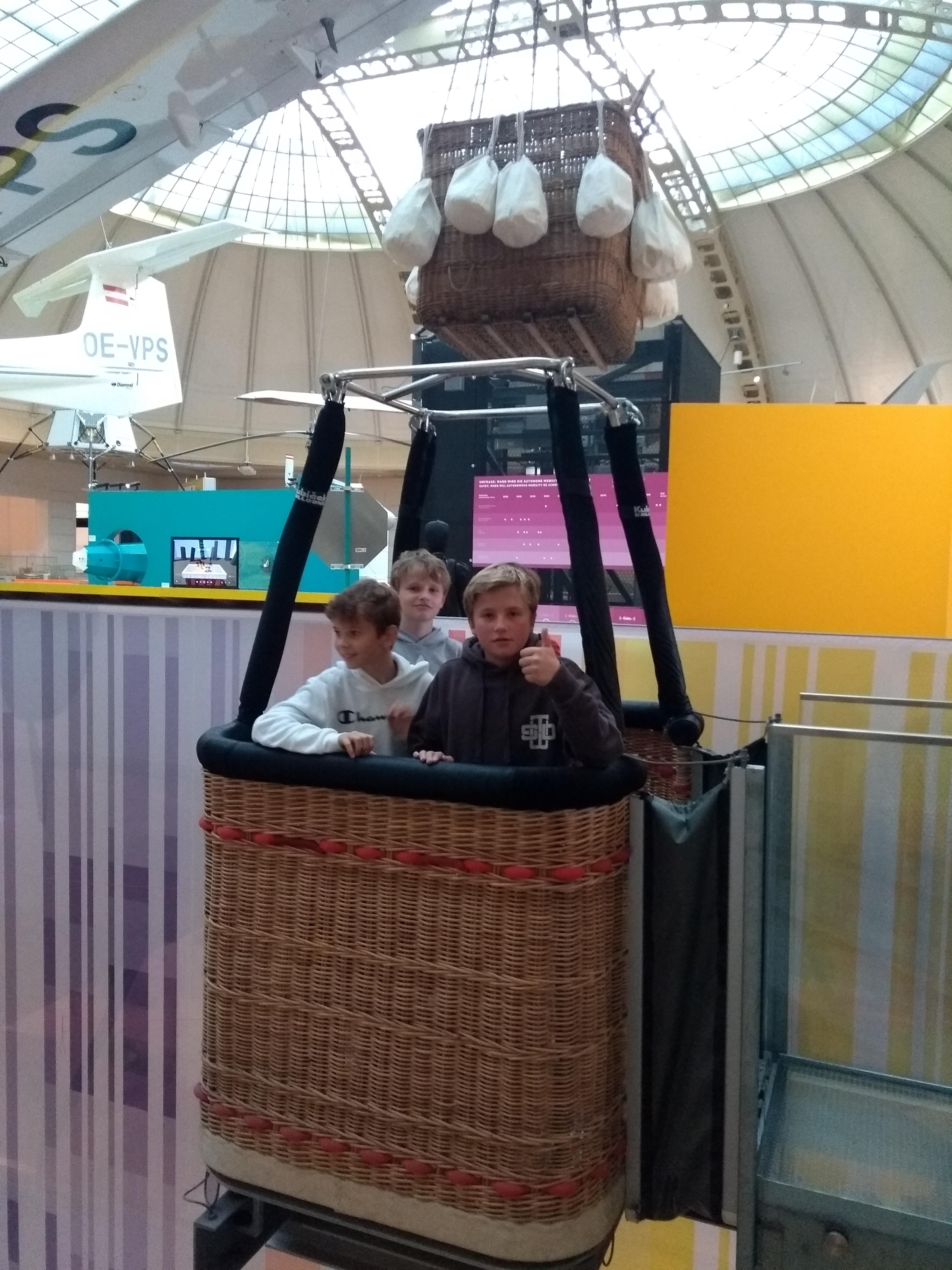 We chose to look at the different modes of transport in choronological order of their invention which enabled us to “go back in time” and pedal around in the first gearless cycles, fly around in hot air balloons, travel in horse drawn carriages moving on metal tracks, see the models of first rafts that helped transport goods along Donau and actually see the insides of a steam engine used not only in trains but also in early cars.