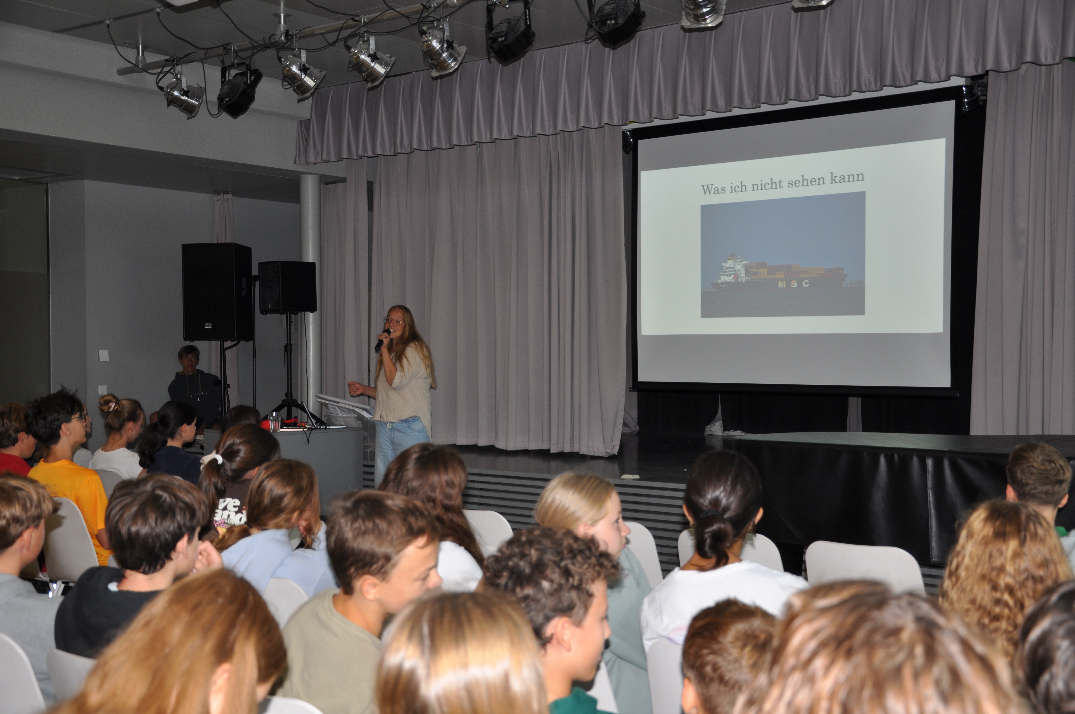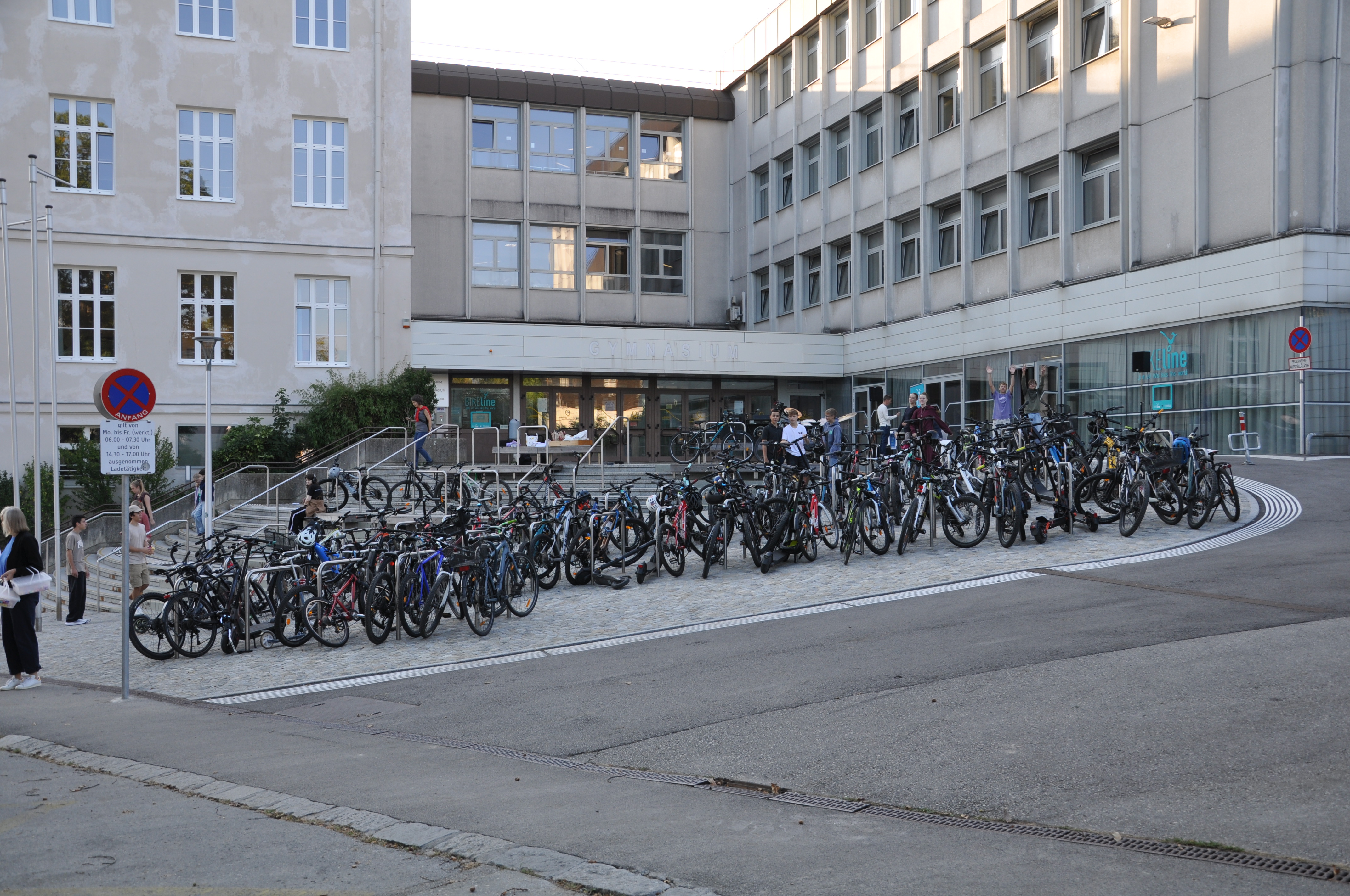 Geboten wurden am Montag 22. September in der Schule eine Radwerkstatt, ein Repair-Cafe, Informationen zu Bike-Line, eine Ausstellung zu Rohstoffen, zwei Vorträge mit Diskussionen, eine Modeschau mit Second-Hand-Kleidung sowie eine Kleidertauschaktion. Nachhaltigkeit wurde auch durch Stadtspaziergänge erfahrbar gemacht. Darüber hinaus setzten sich die Teilnehmenden mit Fragen rund um Mobilität und Klimaschutz auseinander – etwa durch Spiele zum CO₂-Fußabdruck oder die Möglichkeit, Lastenfahrräder zu probieren. Der Elternverein unterstützte den Tag durch das Projekt „Backen statt Parken“.