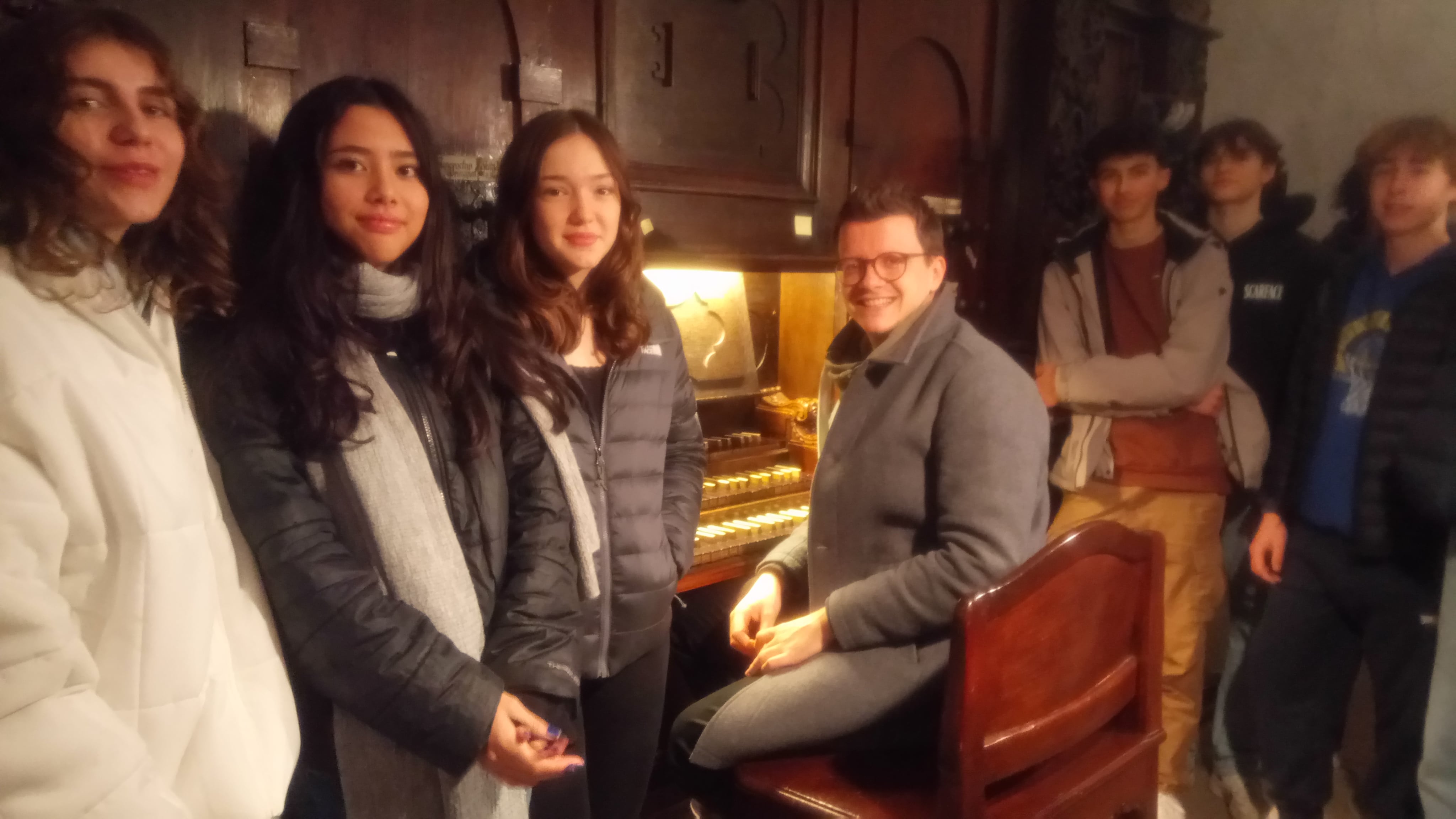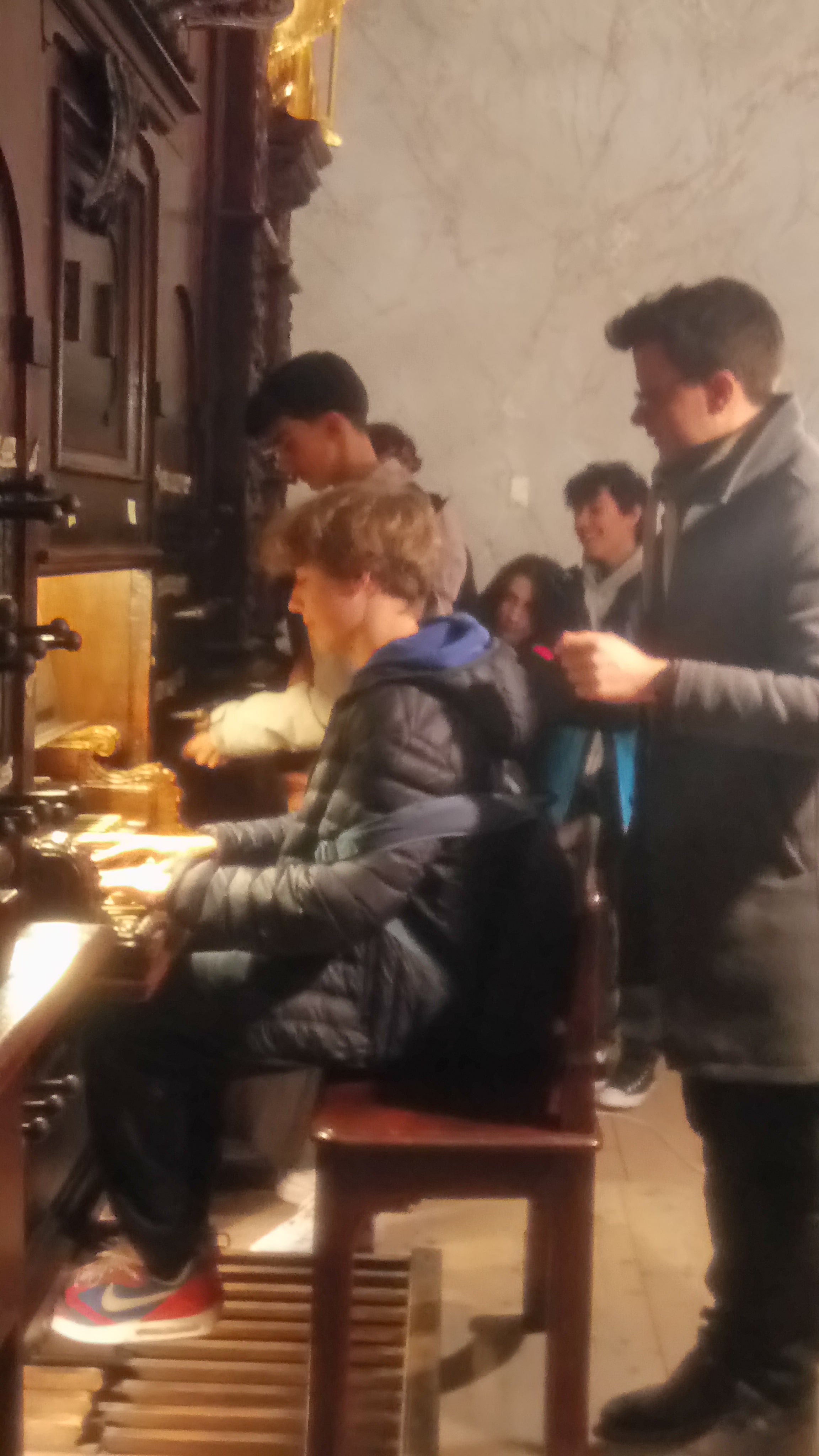 Sowohl die 3B als auch die 6C erhielten gemeinsam mit Frau Prof. Illich eine professionelle Erklärung der großen barocken Festorgel der Stiftskirche. Stiftsorganist Johannes Zeinler zeigte bei dieser Führung auch die moderne Orgel im Altarraum und spielte an beiden Orgeln einige Stücke vor. Begriffe wie Manuale, Pedale, Register und Schleifen wurden anschaulich besprochen und man konnte sich unter anderem gedackte Pfeifen oder den Blasbalg ansehen. Die Schüler und Schülerinnen konnten beide Orgeln selber ausprobieren und unter Anleitung mysteriöse Klänge improvisieren. Insgesamt ein wirklich beeindruckendes Erlebnis!