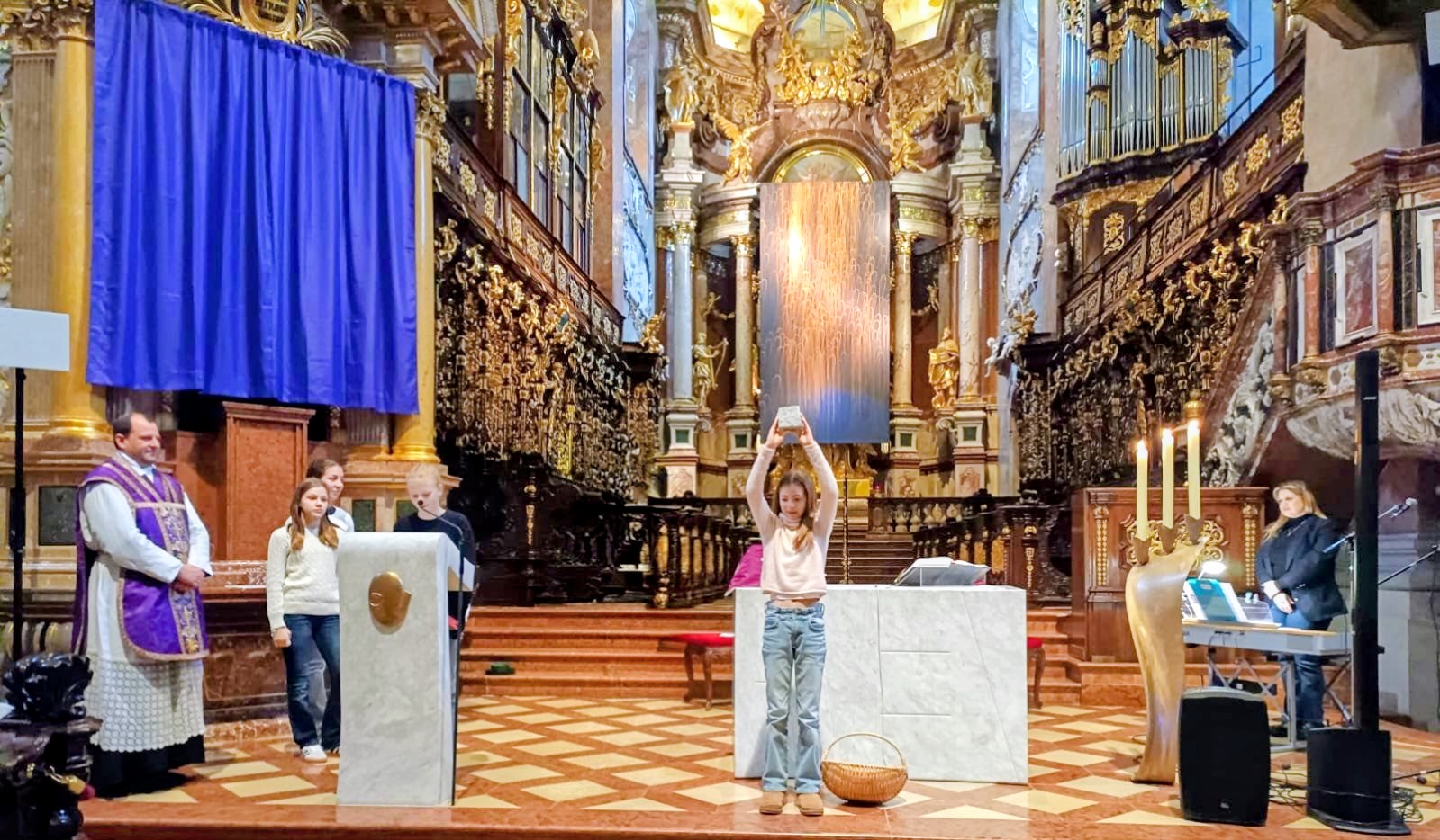 Am Freitag. 27. März 2026 feierte die Unterstufe den Ostergottesdienst in der Stiftskirche, um sich gemeinsam auf das Osterfest einzustimmen. In seiner Predigt ging Prof. Tassilo ausgehend von Maria Magdalena und Maria, die das leere Grab entdecken, auf die menschlichen Erfahrungen von hellen und dunklen Zeiten im Leben ein sowie auf die hoffnungsvolle Botschaft von Ostern ein. Musikalisch wurde die Feier stimmungsvoll von Prof. Nicole Danzinger, Prof. Ruth Plessl und der Organistin Ilona Jambor gestaltet.