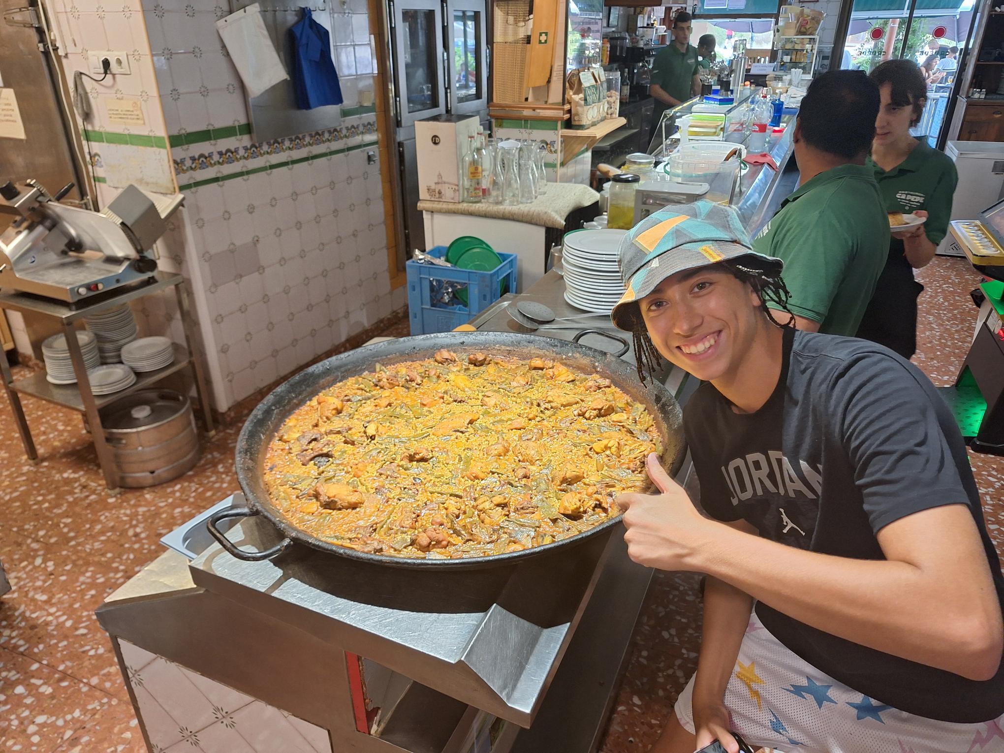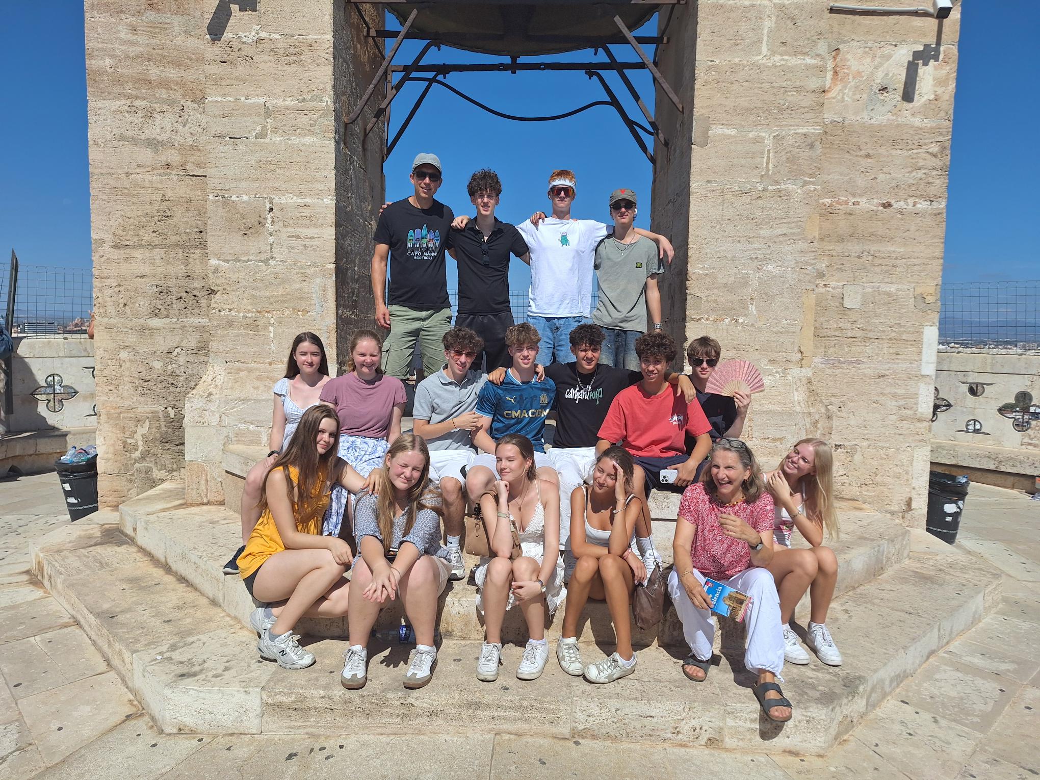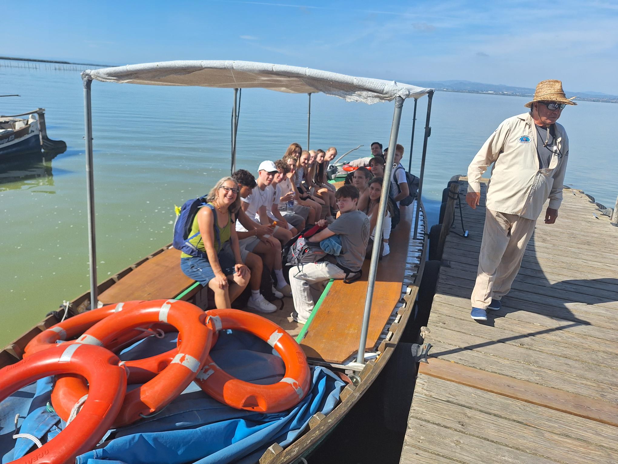Vormittags verbesserten die Schüler*innen in Kleingruppen ihr Spanisch in der Escuela, danach folgte stets ein abwechslungsreiches Programm, das uns in Erinnerung bleiben wird: Wir erklommen die 207 Stufen des Kirchturmes San Migulette und ritten die Wellen beim Surfen am Beach. La Ola setzten wir beim Spiel UD Levante gegen Betis im Fußballstadion fort. Dem Rhythmus folgend versuchten wir uns alle in einem Salsakurs. Dieses erworbene Können erprobten wir gleich am folgenden Abend in einer Salsabar. Etwas erholsamer war dann die Bootfahrt am größten Süßwassersee Spaniens. Dort, in Albufera, wurde auch der Reis für unsere Riesenpfanne Paella angebaut. Als Fest für alle Sinne empfanden wir auch die Märkte der Altstadt mit ihren für Valencia typischen schmackhaften Orangen und frischen Fischen. Nicht unerwähnt dürfen auch die geführte Stadttour mit der stets gut aufgelegten spanischen Betreuerin Sara sowie die Volleyballaction am Strand bleiben.