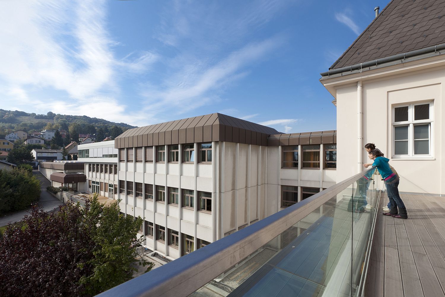 Our school community consists of about 1250 students, 130 teachers as well as administrative staff (school year 2021/22) The school building and premises lie in the heart of the city, featuring computer and science labs, 3 gyms, community areas, a library, an event hall, a school canteen and after school care facilities. Our students must be residents of the city of Klosterneuburg to attend our school.