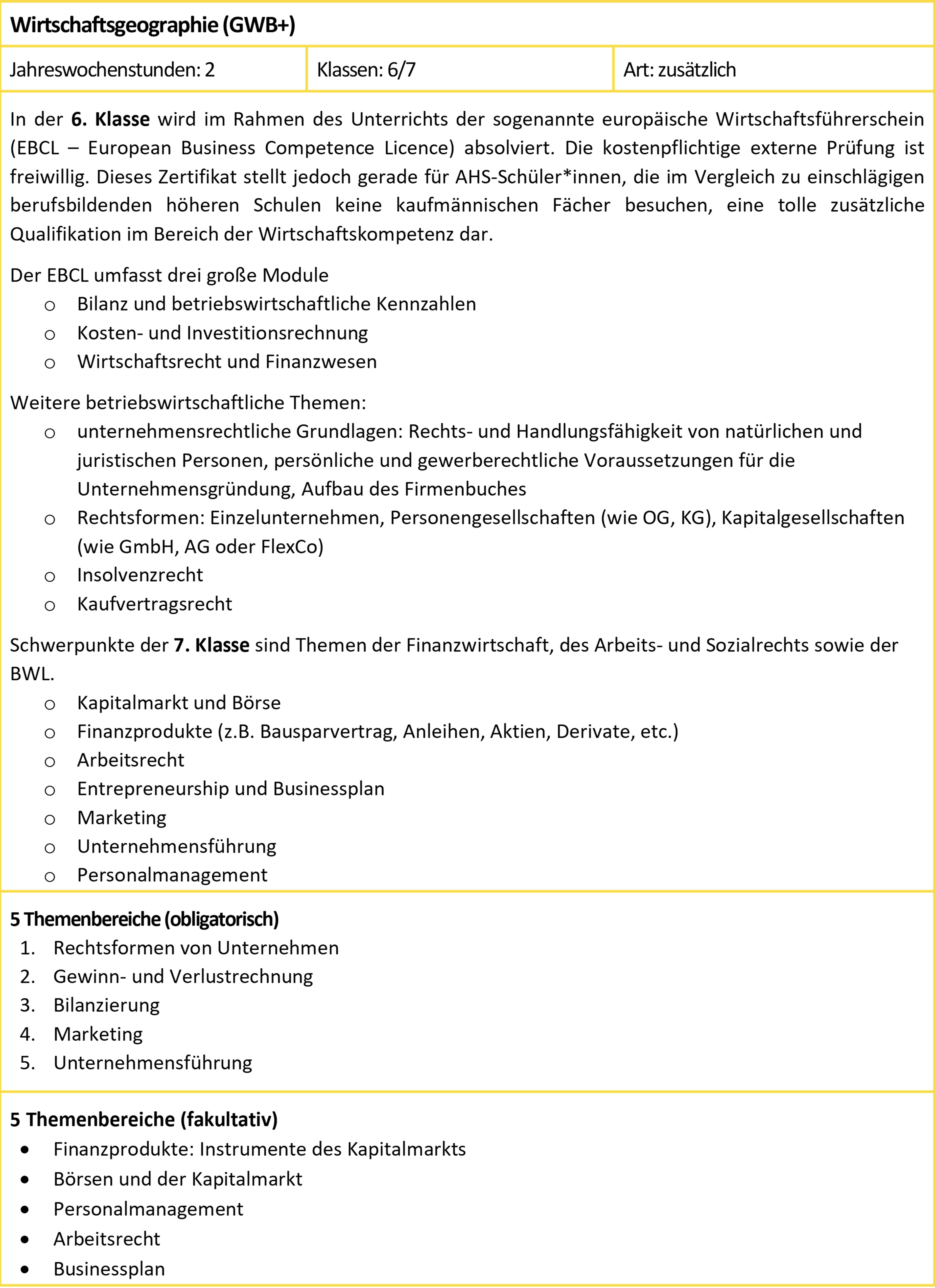 Wahlpflichtgegenstände