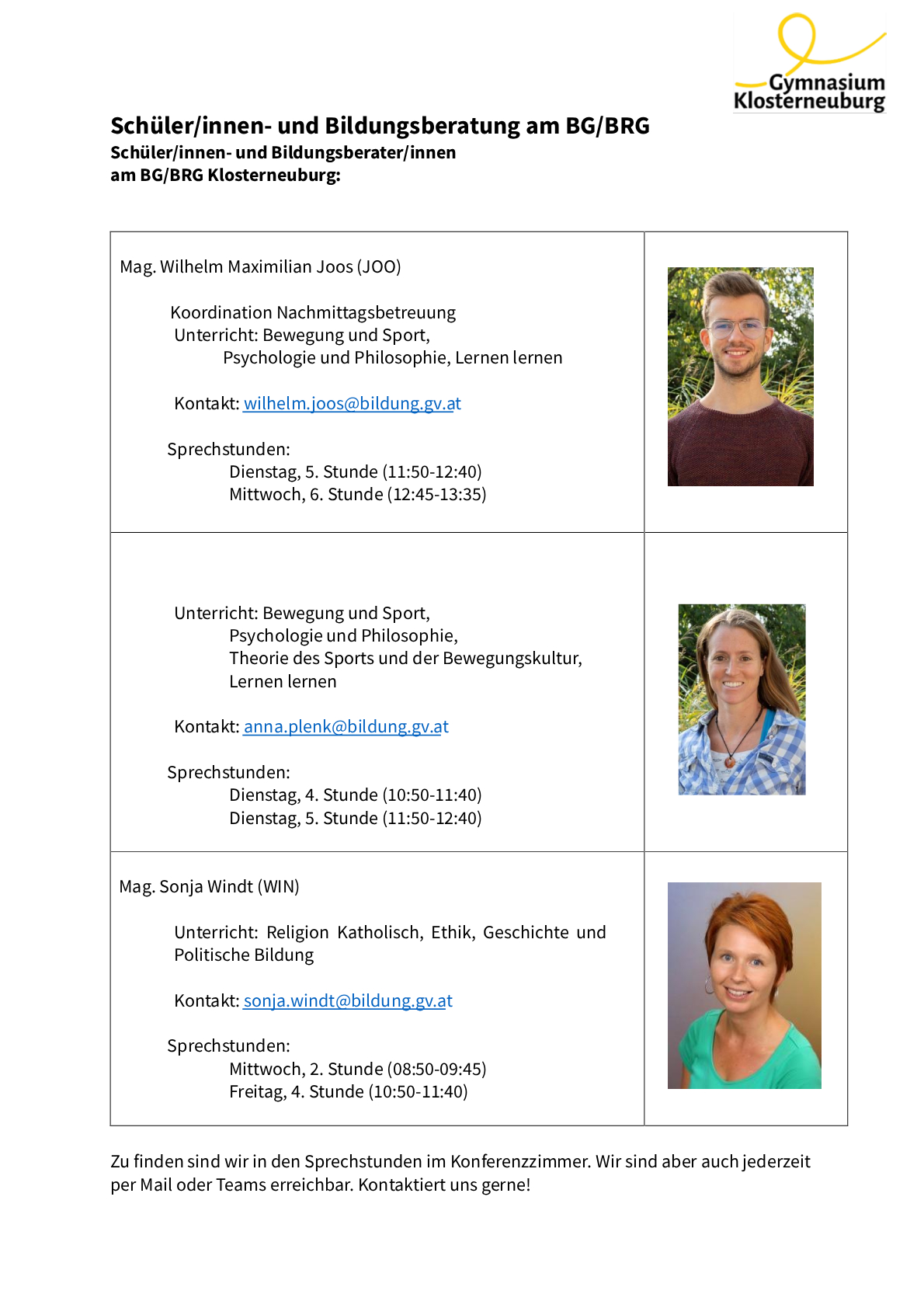 Schüler/innen- und Bildungsberatung am BG/BRG Klosterneuburg